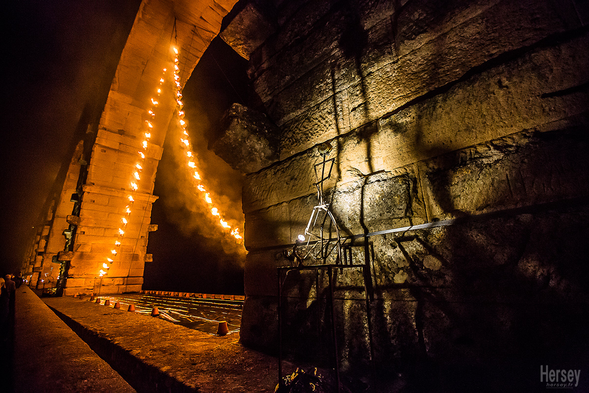 Le Pont du Gard se prête à de nombreuses mises en lumière, qui ont lieu principalement en été. Cette fois, la mise en valeur de l’édifice, ainsi que les berges du Gardon, a été confiée à la compagnie Carabosse, compagnie d’arts de la rue. Cet évènement a eu lieu au cours de 3 nuits de Janvier 2015 afin de fêter le 30ème anniversaire du classement du site au Patrimoine Mondial de l’Unesco
