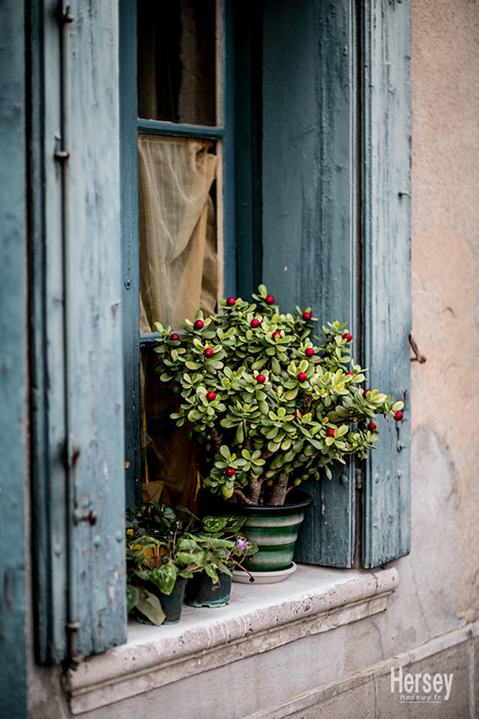 Fenêtre typique du vieux quartier du Barry à Uzès dans le Gard. Le Barry est le nom du quartier pittoresque se trouvant entre l’église Saint Etienne et la cathédrale Saint Théodorit, en bordure du boulevard Victor Hugo remplaçant les anciens remparts, face à la route de Nîmes